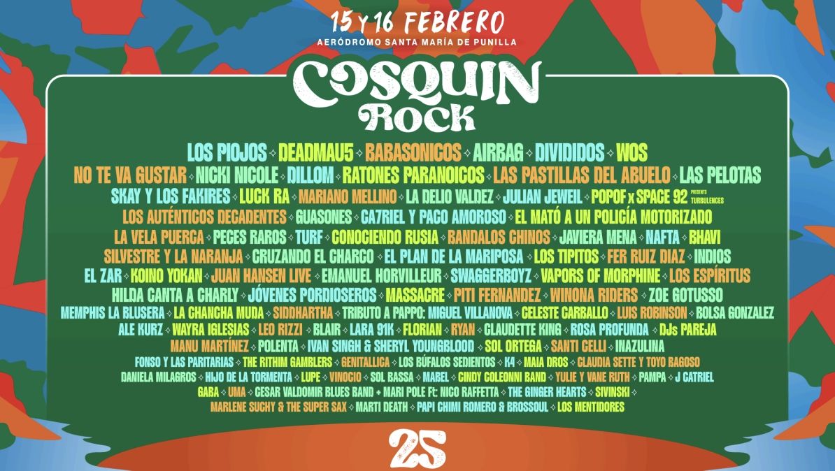 El Cosquín Rock se prepara para su 25º aniversario que se llevará a cabo el 15 y 16 de febrero de 2025 en el Aeródromo de Santa María de Punilla. La cuenta regresiva ya comenzó y este lunes se reveló la grilla de artistas que dirán presentes.