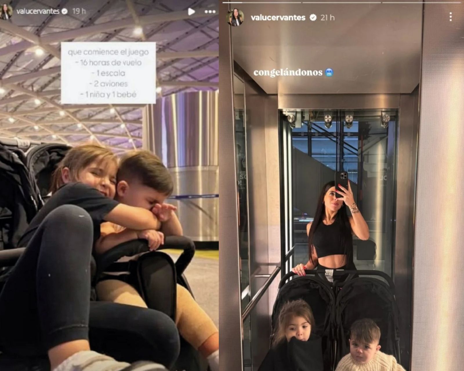 El viaje estuvo lleno de complicaciones, como el intenso frío en el aeropuerto debido al aire acondicionado. Además, contó cómo se las ingeniaba para estar cómoda al cuidar a los chicos. "Congelándonos", escribió, evidenciando que, a pesar de las dificultades, seguía con buen ánimo.