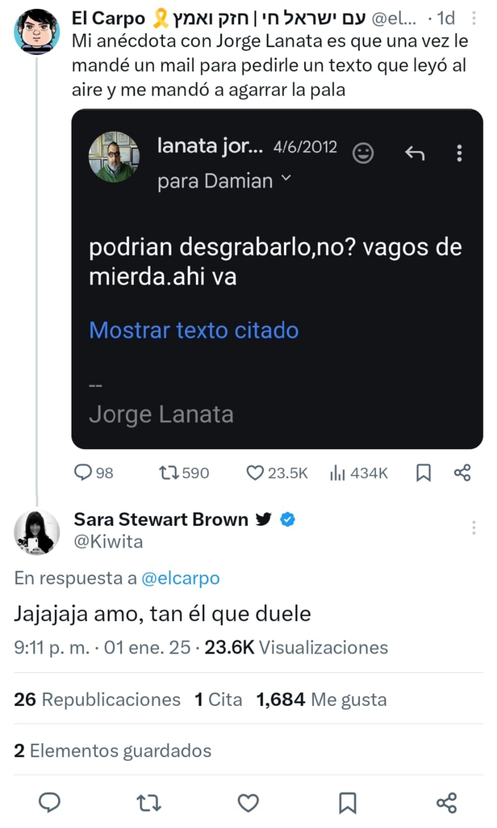 "Mi anécdota con Jorge Lanata es que una vez le mandé un mail para pedirle un texto que leyó al aire y me mandó a agarrar la pala", contó el internauta.