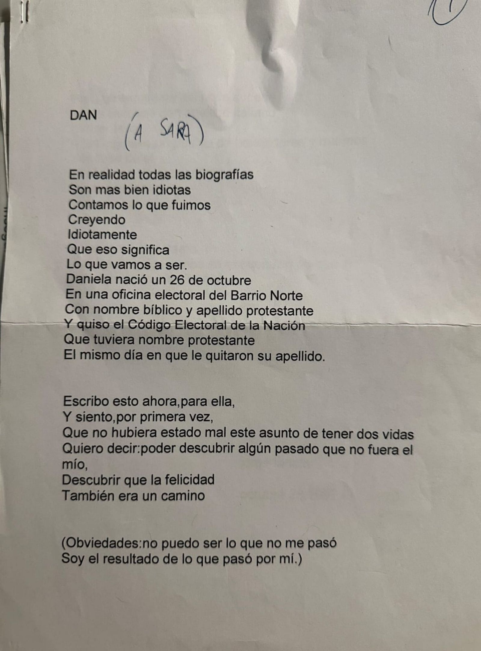 "Esto me lo escribió cuando finalmente encontré a Mercedes, mi mamá biológica (el me había ayudado en esa misión) no puedo creer que no se lo mostré cuando una vida después supimos que el también era adoptado. Daniela era el nombre que yo tenía en mi partida de nacimiento original", reveló la artista.