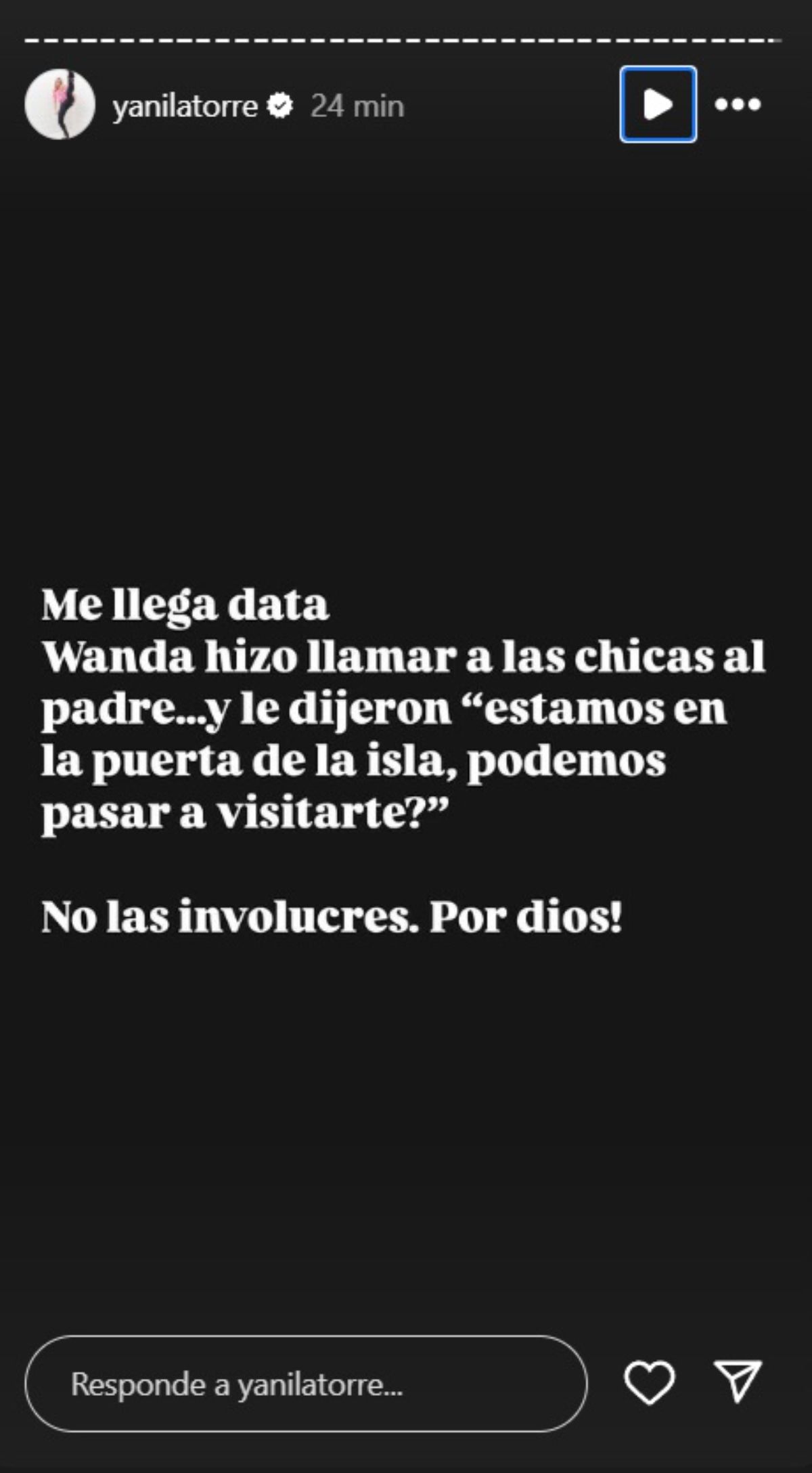 Mientras el conflicto avanza, la periodista mantiene a sus seguidores informados. En sus últimas publicaciones, afirmó que Wanda habría hecho llamar a las hijas para que visitaran a Icardi, pero pidió que no se involucren más a las chicas en este enfrentamiento, mostrando preocupación por ellas.