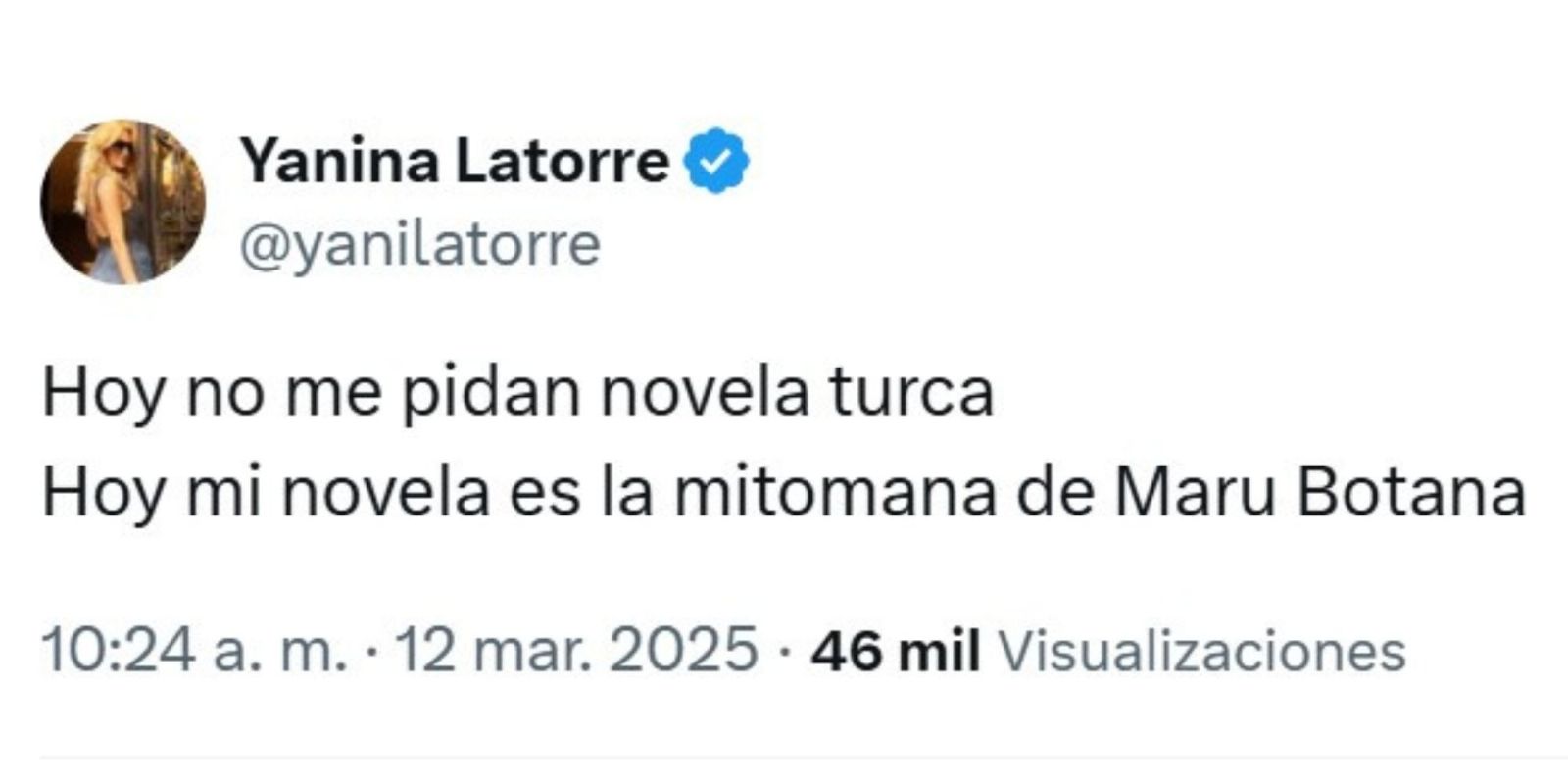 Claro que Yanina Latorre no se quedó callada al ver la entrevista que su excompañera de facultad le brindó a Infobae. La periodista de LAM publicó un virulento posteo en X en el que volvió a acusar a Maru Botana de mentirosa.