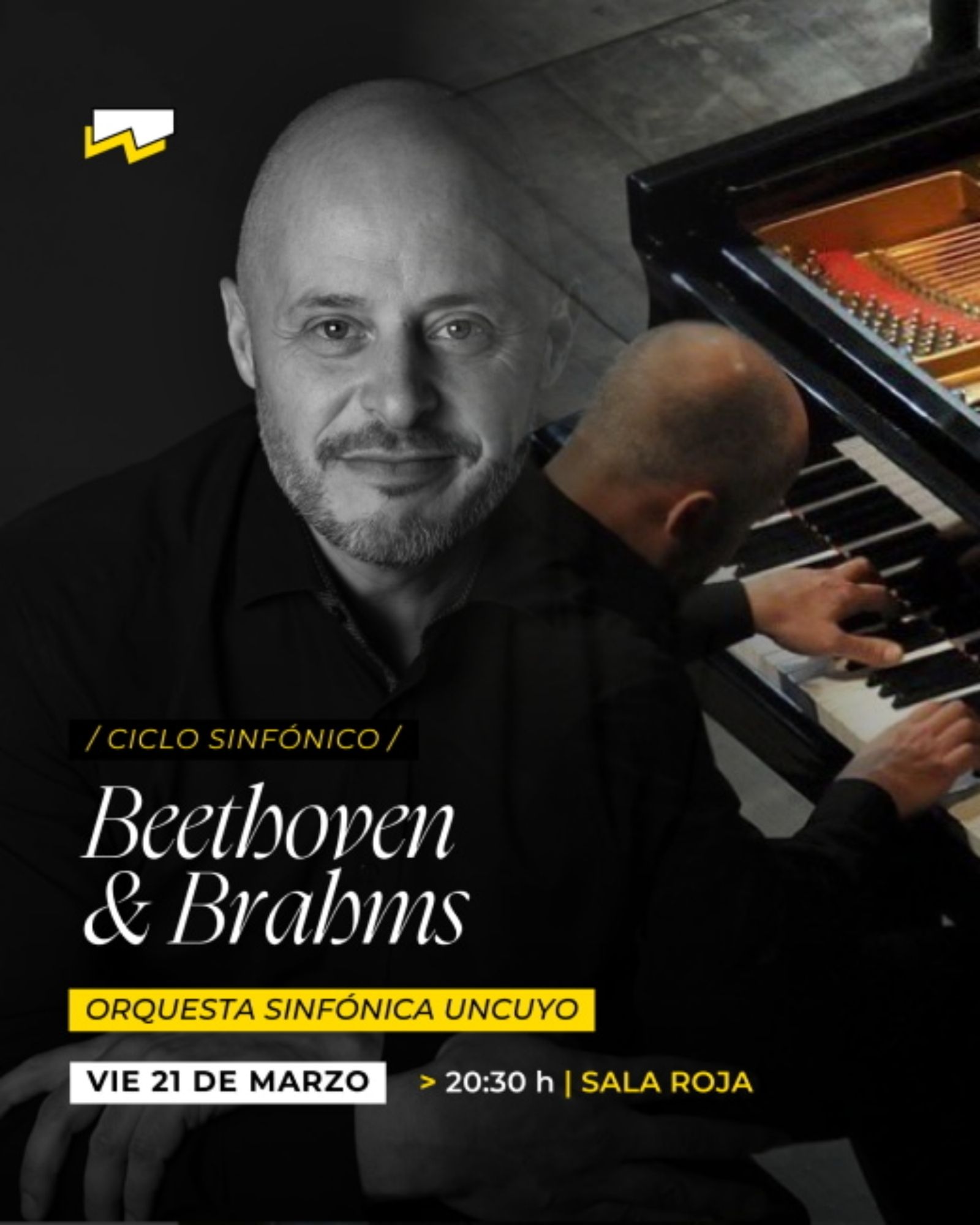 - La Orquesta Sinfónica de la Universidad Nacional de Cuyo presenta Beethoven & Brahms: El tradicional ciclo de la Sinfónica invita a disfrutar de un repertorio perteneciente a dos grandes maestros del piano y la composición, se trata del vienés Ludwig van Beethoven con su Obertura Egmont y del, también alemán, Johannes Brahms de quien se interpretará su Concierto nº1 para piano. Contará con la participación del destacado pianista mendocino Fernando Viani como solista invitado y con la dirección de Tobias Volkmann.