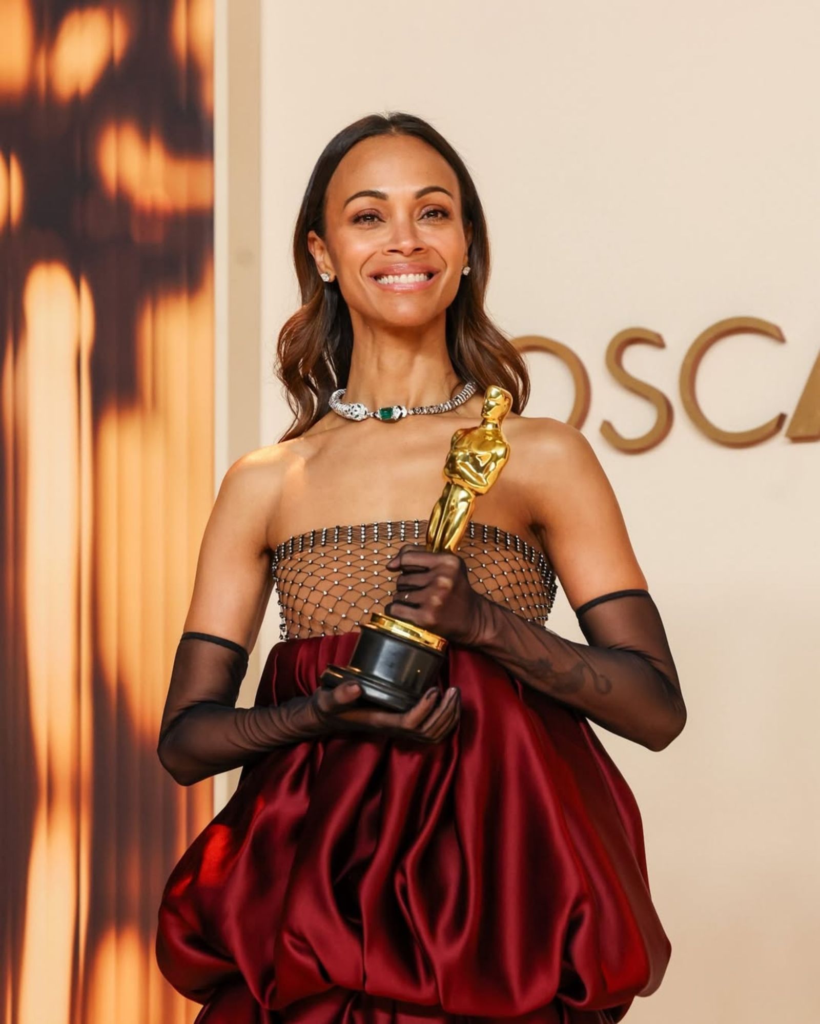 "Mi abuela vino a este país en 1961. Yo soy una orgullosa hija de padres inmigrantes con sueños, dignidad y manos trabajadoras. Y soy la primera estadounidense de origen dominicano en aceptar un premio de la Academia, y sé que no seré la última(...). Si mi abuela estuviera aquí, estaría tan feliz, esto es para ella. Esto es para mi abuela Argentina Cesse", expresó Zoe en los Premios Oscar.