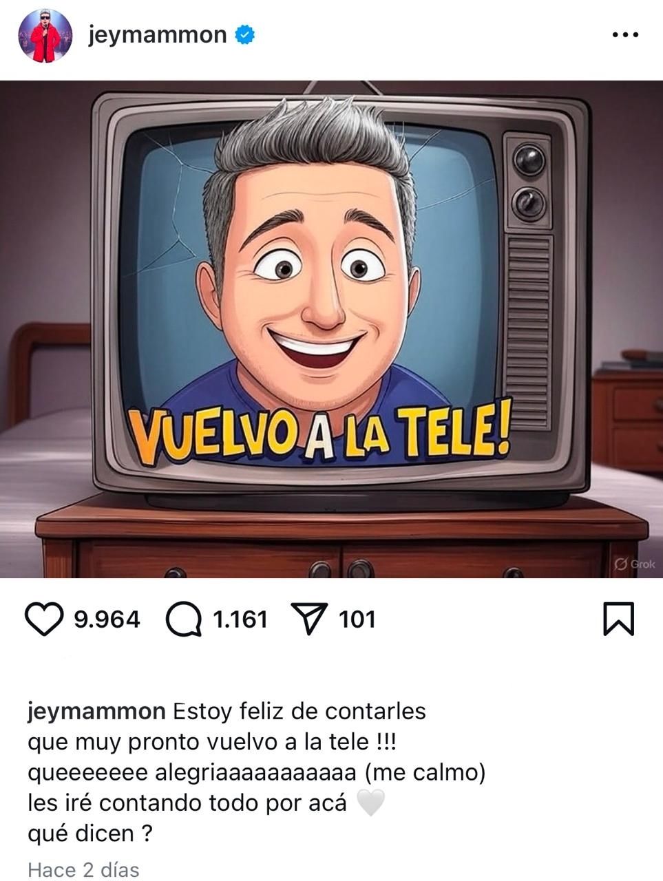 Jey Mammón anunció su esperado regreso a la pantalla chica y recientemente reveló en qué señal podrá verse su nuevo ciclo. A principios de abril, el humorista compartió una caricatura en su perfil de Instagram y manifestó su regreso a la televisión.