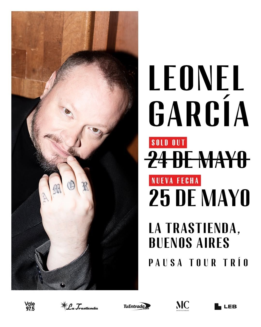 Ahora, con treinta años de carrera musical, el artista cuatro veces ganador de los premios Latin Grammys regresa a la Argentina-esta vez como solista- para presentar su último álbum de estudio “Pausa” (2024) y contar con la música su historia. El centro cultural La Trastienda (Balcarce 460, CABA) recibirá a Leonel García por primera vez como solista en nuestro país, en el marco de su gira internacional “Pausa Tour Trío”. El intérprete de “Suficiente” actuará con su “power trío” en dos fechas en la Ciudad de Buenos Aires: el sábado 24 de mayo (con localidades agotadas) y el domingo 25 (entradas a la venta a través de tuentrada.com).