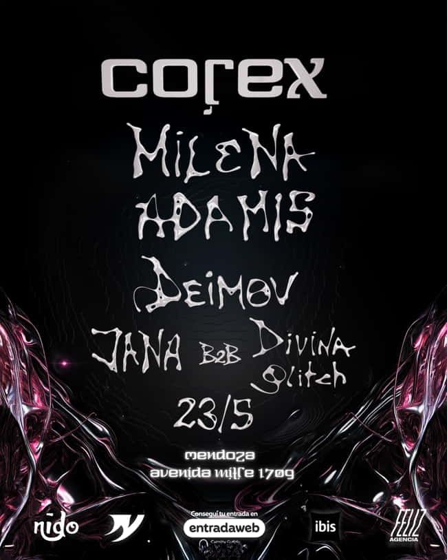 Este viernes se realizará una nueva jornada de la Fiesta Corex, con un cierre de lujo a cargo de la reconocida dj argentina Milena Adamis, quien viene de tocar en el festival Ultra de Buenos Aires y también en HOR Berlín. Este ciclo electrónico organizado por Feliz Agencia, que se caracteriza por ser refugio para muchos artistas de techno duro, volverá a tener un line up con talentosos artistas del OFF electrónico. Jana, Deimov y Divina Glitch también pasarán por la consola.