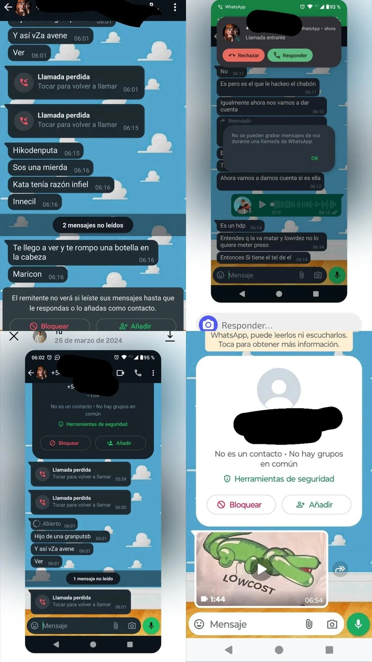 Posteriormente, Gustavo compartió diferentes capturas de pantalla donde se puede observar el chat con Lourdes Fernández junto a mensajes que contenían fuertes insultos. A su vez, llamadas perdidas de manera insistente.