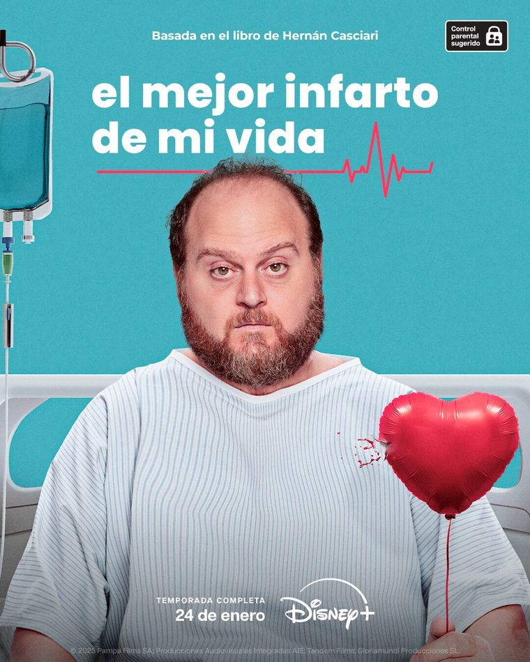Disney Plus ofrece una gran variedad de películas, series y documentales. Dentro del catálogo se encuentran por supuesto grandes producciones nacionales como "Camaleón", la serie protagonizada por Eugenia China Suárez y Pablo Echarri, pero además está disponible "El mejor infarto de mi vida", una miniserie basada en hechos reales que combina el drama y la comedia.