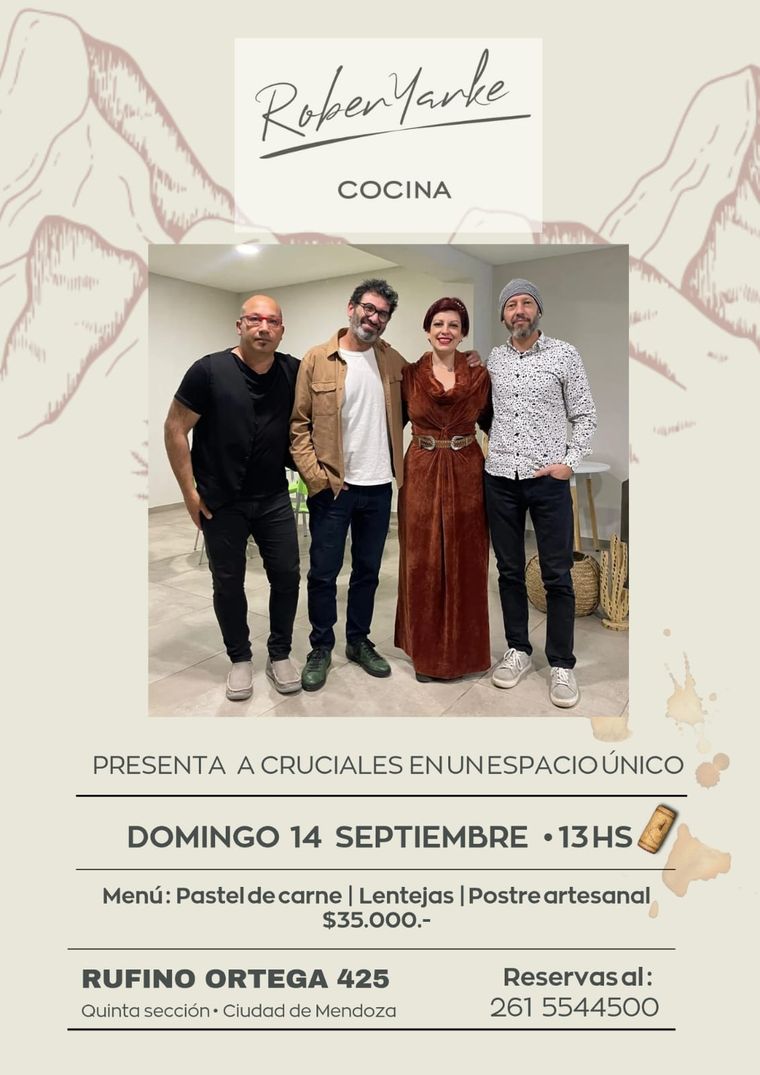 Este domingo al mediodía, la cocina deluxe del gran Rober Yarke te espera haciendo maridaje con Cruciales y lo mejor de su repertorio. Con la opción de un menú exquisito de pastel de carne, lentejas y postre artesanal a $35.000.