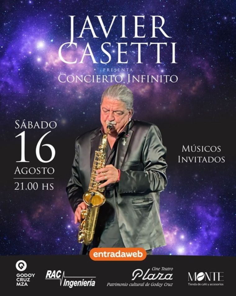 Concierto infinito: Javier Casetti presenta su nuevo espectáculo, en donde a través de su saxo, su particular y profunda calidad interpretativa, logra emocionar y trasladar a su público a los mejores momentos vividos, atesorados en el recuerdo.