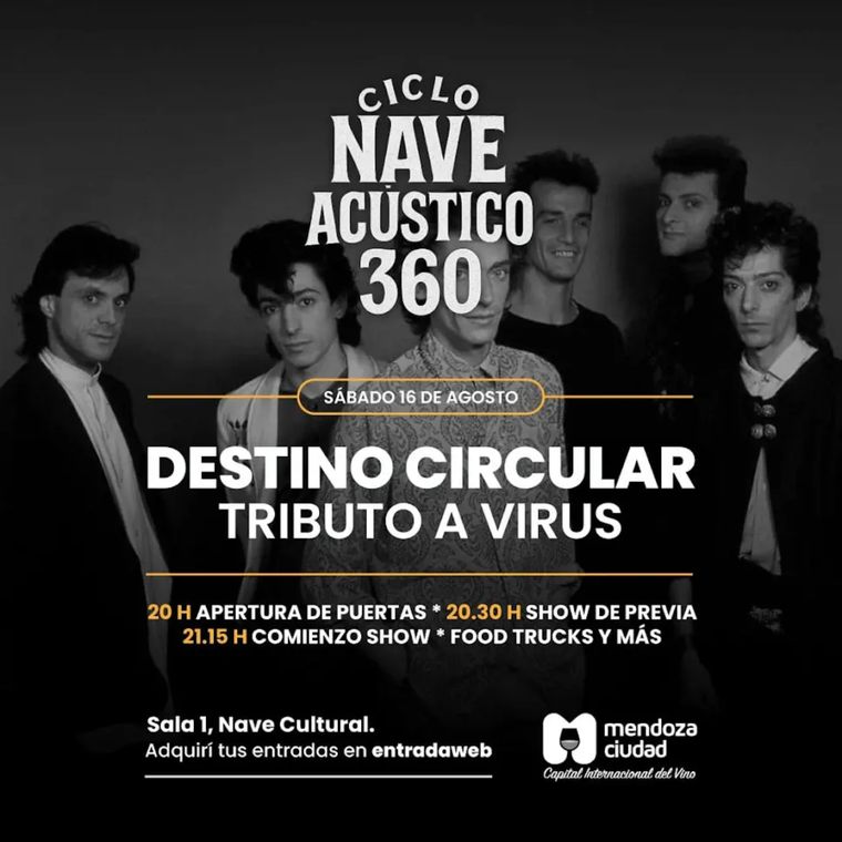 Destino circular, tributo a Virus: ¿Creías conocer todas las versiones de la icónica banda? Este show promete sorprenderte con arreglos acústicos que redescubrirán esos temas que marcaron a generaciones. ¡Una oportunidad imperdible para vivir la música de Virus como nunca antes, acompañada de food trucks y más sorpresas!