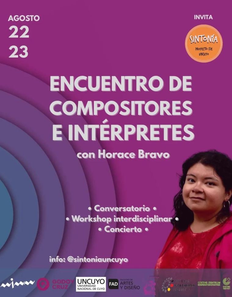 Mendoza será escenario de un espacio único de creación, diálogo y música contemporánea con la presencia especial de la compositora Horace Bravo, invitada a compartir su obra y experiencia junto a músicxs de la provincia y la región. El día sábado se reaizará un taller llamado "El texto como punto de partida" y el concierto "La libertad del sueño".