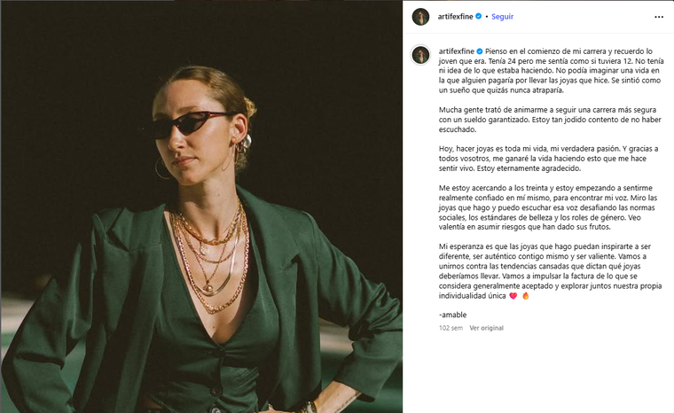 Antes de dedicarse a la joyería, cursó estudios en Florida State University. Su principal carrera fue psicología, la cual figura como promoción 2017 en registros universitarios. Tras graduarse trabajó brevemente en un estudio jurídico/ambiente de oficina, hasta que en 2019 y 2020 pasó a formarse con su padre en orfebrería y descubrió su vocación. Durante la pandemia fue cuando empezó a producir piezas propias y ganar tracción en redes.