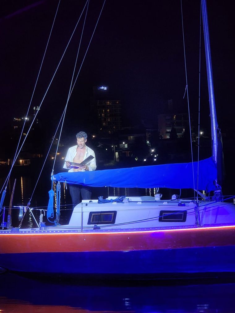 Ocurre que el escenario donde se desarrolla la trama es un velero y el público no se sienta en una sala convencional, sino que sube a un catamarán, se coloca auriculares y se deja llevar —literal y simbólicamente— por la historia de Máximo Buenafortuna, un abogado en crisis que navega su propio derrumbe personal mientras su velero flota a la deriva.