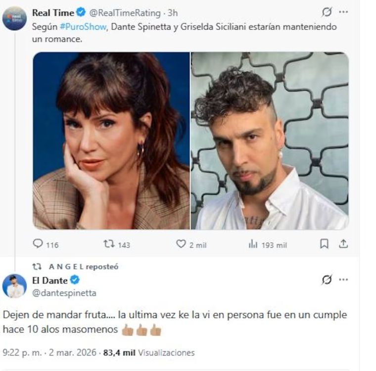 No conforme con su declaración privada, Dante Spinetta recurrió a sus redes sociales para terminar con la especulación. A través de su cuenta de X, disparó contra quienes alimentan el rumor.
