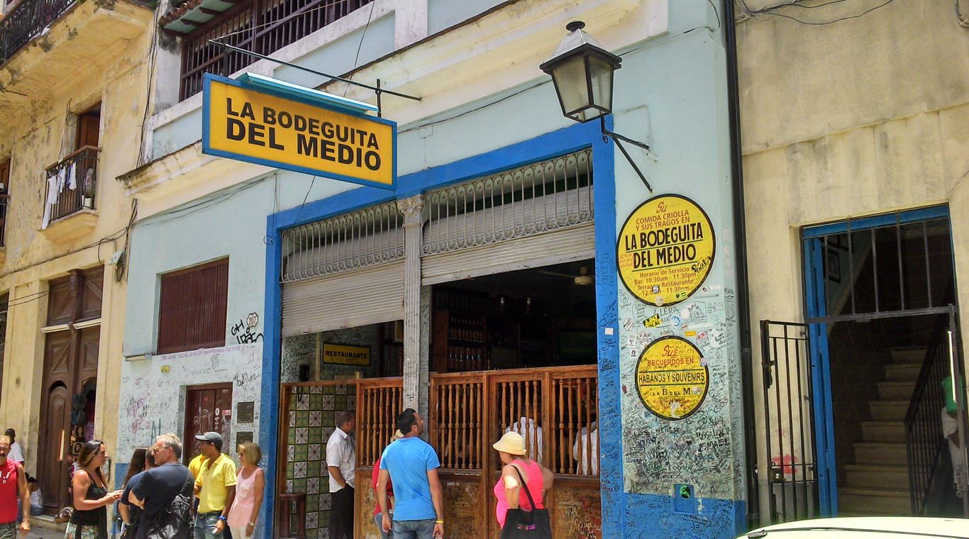 También hay que darse una vuelta por el Museo del Ron Havana Club y después comer algo típico por ahí: arroz blanco y frijoles negros (“moros y cristianos”), cerdo, o los pescados y mariscos que se encuentren, entre los que puede haber desde camarones hasta langosta, pasando por un pez exquisito: el pargo. También se puede apelar a la “ropa vieja”, una carne deshilachada bien condimentada con varias especias entre las que sobresale el comino, muy común en la cocina local. "La Bodeguita del Medio", donde Ernest Hemingway se tomaba sus mojitos.