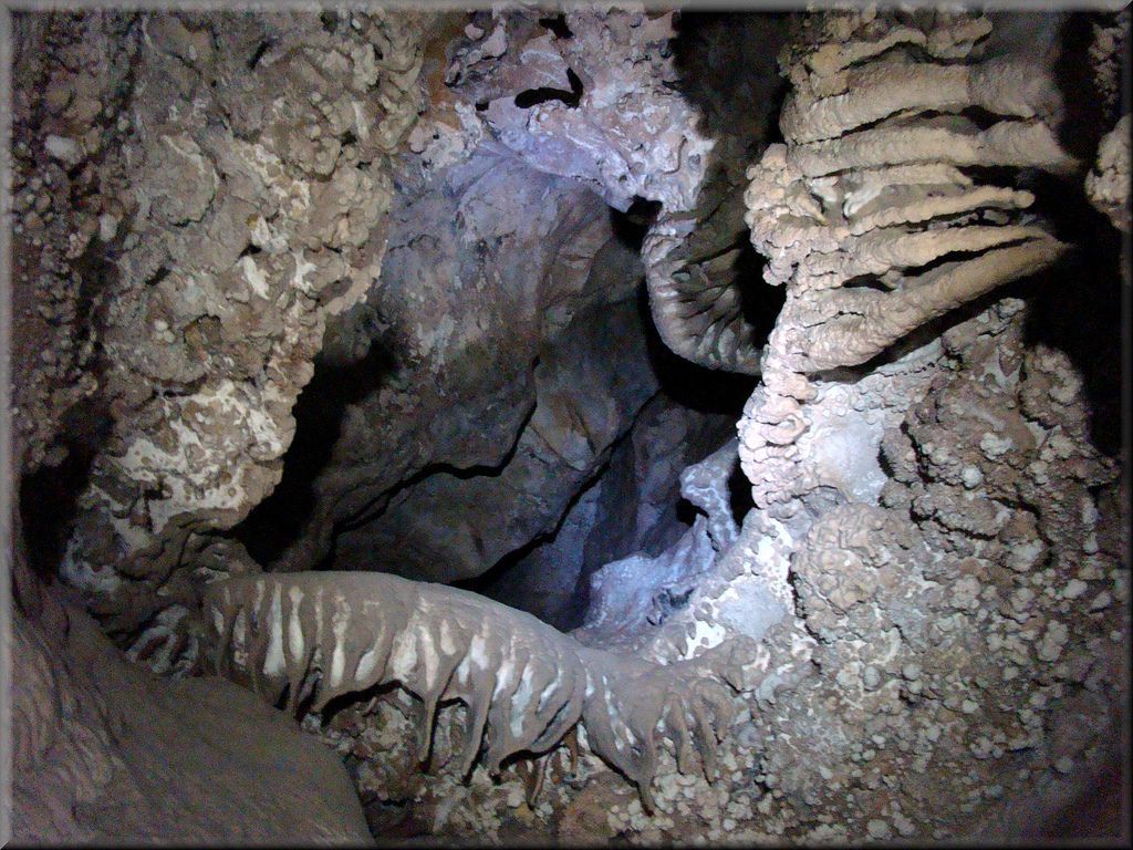 4-Caverna de las Brujas: hermoso recorrido por el interior de una caverna con estalactitas y estalagmitas. Son cavernas de tipo Kárstico porque se originan de la meteorización de la piedra caliza. Las aguas del deshielo de las nieves y lluvias, se infiltraron por las paredes de piedra calcárea (caliza) de origen Jurásico y han arrastrado disueltos carbonatos y silicatos que, goteando a través de los milenios han formado columnas, estalactitas y estalagmitas que crecen a una tasa tan lenta (1 mm cada 160 años). No tocarlas.