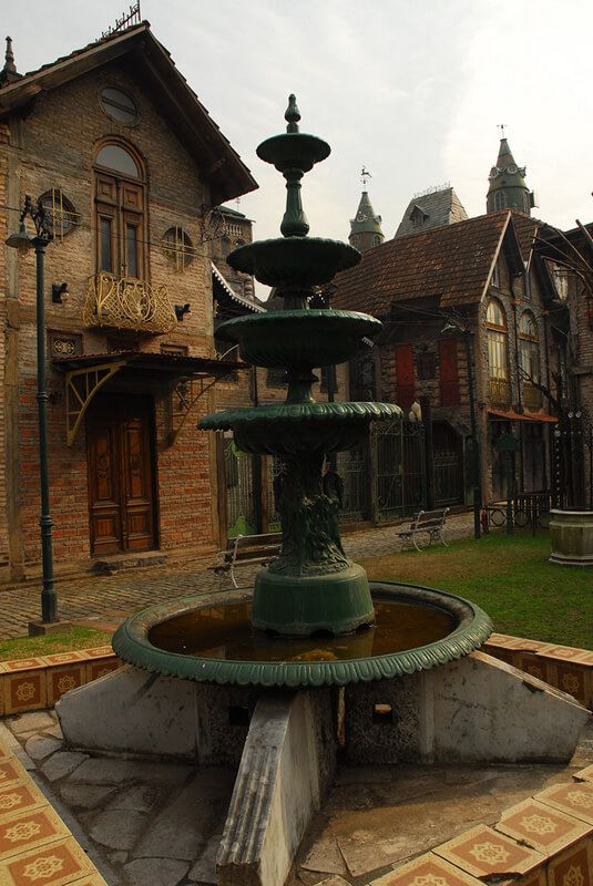 Extraña y atrapante, la aldea está formada por un grupo de construcciones unidas por callejuelas adoquinadas, pasajes, recovecos y lugares secretos. Responde a estilos diversos del medioevo europeo unidos para producir un ecléctico estilo propio.