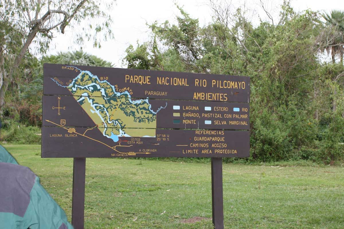 De todos los Chacos que encierra el Gran Chaco, el PN Río Pilcomayo representa al llamado Húmedo u Oriental: la franja con régimen pluvial más generoso y la de mayor biodiversidad de la región. Un cíclico juego de inundaciones y sequías rige la vida en su llana inmensidad. Su elenco de fauna abarca a varias especies en peligro: el aguará guazú, el oso hormiguero, el ocelote, el lobito de río y el muitú. Dos caminos de tierra permiten explorar los distintos ambientes del Parque: uno conduce a la cabecera oriental de la laguna Blanca (principal espejo del PN con 700 ha), donde hay un balneario, un mangrullo y un camping bien equipado. El otro termina junto al Pilcomayo, luego de atravesar el angosto Estero Poí. En la estación seca se concentran allí cientos de cigüeñas, garzas y otras aves.