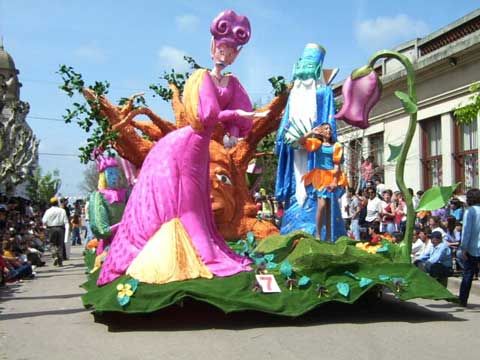 Todo el domingo hasta el lunes, la música no para de sonar. Todas las calles están adornadas para el desfile de comparsas y coreografías. En la noche predominan las luces y el brillo de bellas caravanas llenas de magia y fantasía.