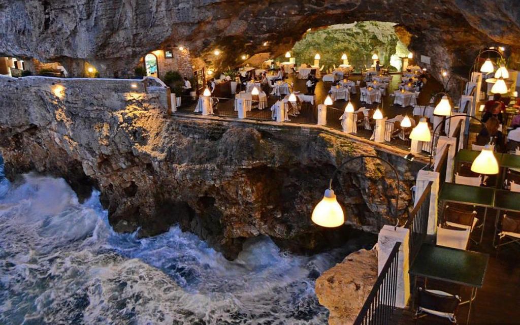 Ristorante Grotta Palazzese, ubicado en las cuevas de la playa Polignano a Mere, es uno de los mejores lugares para comer en toda Italia, si no es en el mundo.
