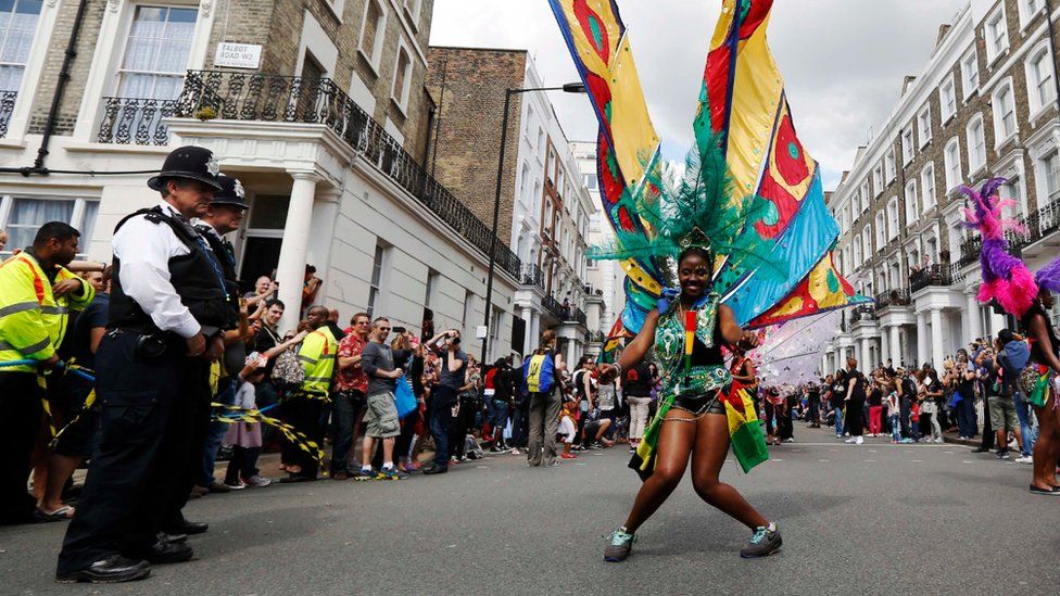 Notting Hill: Uno de las peculiaridades más destacadas del carnaval de Notting Hill es que, a diferencia del resto, se celebra durante el último fin de semana del mes de agosto. Nacido a mediados de la década de los 60 de la mano de inmigrantes sobre todo jamaiquinos, conserva un aire caribeño, con plumas y vestimentas típicas de otras latitudes más cálidas, en contraste con el escenario que ofrecen las calles de este barrio de la ciudad de Londres. Su carácter abierto lo ha convertido en el carnaval más grande de Europa y el segundo del mundo después del de Río de Janeiro. Y es que Notting Hill tiene un sabor propio, que invita a gentes de todo el mundo a bailar y a disfrutar de la fiesta sin un guión preestablecido.