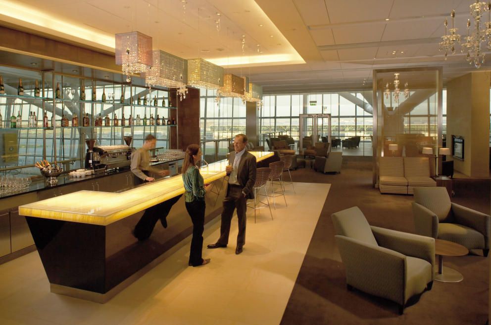 De Asia aterrizamos en Europa. En las salas VIP de la terminal de British Airways en Heathrow encontramos The Gold Bar, un espacio recubierto de hojas de oro iluminado por unas lámparas de cristal de Swarovski. En este establecimiento cualquier cosa que sus clientes deseen se convierte en realidad. Por ejemplo, pueden relajarse en el Elemis Spa Travel, con zona de hidroterapia y tratamientos varios, mientras el personal de tierra se encarga de reservarles las mejores entradas para el teatro en su próxima ciudad de destino.