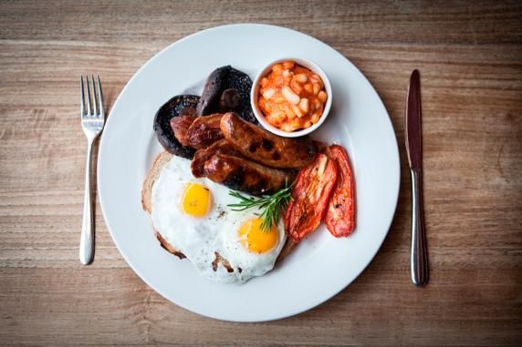 1 - Reino Unido: el desayuno completo Inglés que está dotado sobre todo de: huevos fritos, revueltos o escalfados, panceta frita o a la plancha, y tostadas. Se puede acompañar de salchichas, tomates fritos y habas. Para beber café o té.
