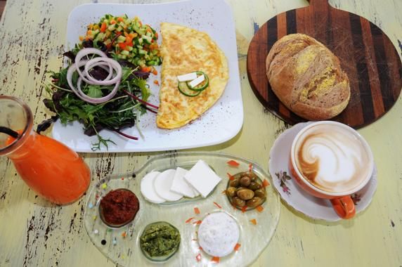 2- Israel: el desayuno israelí suele ser muy abundante y con productos frescos. Se compone básicamente de: pan, quesos duros y blandos, yogur, aceitunas, mermelada, mantequilla, huevos. Para beber zumo, café y leche.