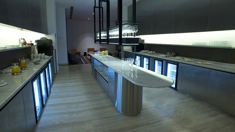Dividido en dos plantas, el salón tiene más de 2000 m², puede recibir casi 500 personas al mismo tiempo y está preparado para ofrecer un servicio de alto estándar. El buffet, que incluyen comidas frías y calientes con una docena de opciones. Y para los amantes del buen beber, una amplia variedad de los mejores vinos de la región.