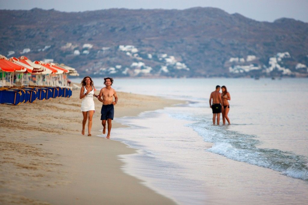 Mykonos es una isla muy pequeña, con paisajes típicos griegos, bien montañosos, ideal para practicar senderismo y caminar. La playa Elia es un lugar pequeño y precioso, con arena suave y hermosas aguas para nadar. También es un poco más tranquilo que algunas de las otras playas de Grecia, pero todavía hay un montón de instalaciones y actividades de deportes acuáticos.