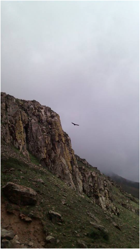 Luego de caminar 3 horas, comenzamos a escuchar el ruido del agua que cae de las alturas y apreciamos unos vestigios de nieve blanca que embellecen el paisaje. La llegada a la cascada, es un momento de pura satisfacción. Brinda mucho color, frescura, aire puro, tranquilidad y felicidad. Disfrutamos la compañía de tres águilas que planeaban arriba nuestro. Es el momento donde el corazón late y el sentimiento de satisfacción inunda cada espacio del cuerpo.