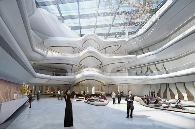 El lobby, la cafetería, los salones y la recepción contarán con muebles diseñados o seleccionados por Hadid, todos emulando su estilo característico.