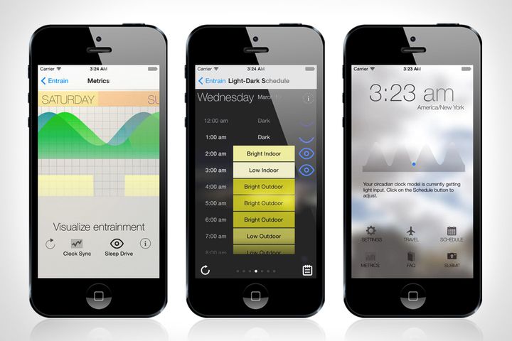 Entrain. Se focaliza en mejorar el jet lag con una avanzada calculadora-despertador. Requiere introducir ciertos datos como la ciudad donde vive el viajero, el destino y horario, hábitos de sueño y el tipo de luz que recibirá durante el viaje. Sobre la base de esa información, propone los horarios óptimos a los que conviene estar expuesto a la luz y oscuridad, recomienda cuándo despertarse e irse a dormir y aporta gráficos del ritmo biológico actual y del que se tendrá en destino para intentar adaptarlo lo mejor posible. Desarrollada por la Universidad de Michigan, esta aplicación es muy práctica cuando se presentan diferencias de husos horarios y el cuerpo comienza a sentirse cansado. En ocasiones, Entrain puede recomendar oscuridad durante el día o algunas horas de luz directa de una lámpara a la noche. Quien siga los consejos -promete la aplicación- se repondrá con mayor velocidad a las molestias del jet lag. Disponible para Android y Apple IPhone/IPad.