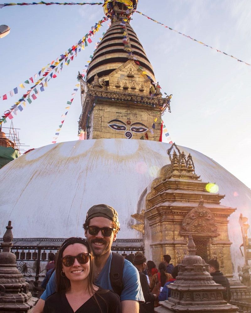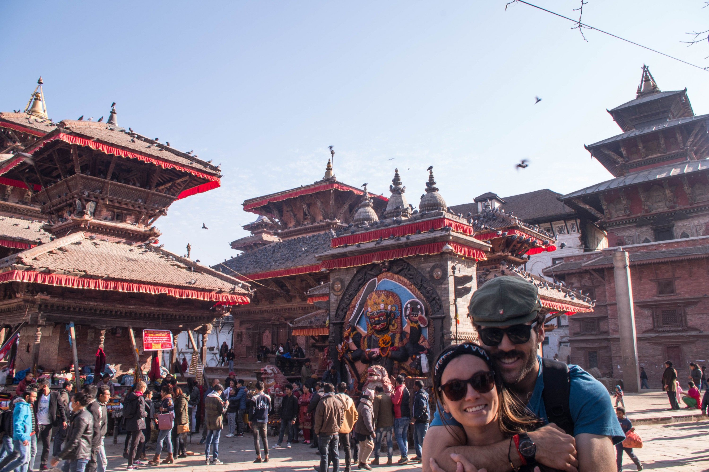 Terminada nuestra estancia, emprendimos un viaje de 24 horas combinando tren, taxi, Jeep y buses hasta llegar a Kathmandu, capital del tranquilo Nepal, tierra natal del Buddha. En ese pequeño país hinduista, que alberga 30 millones de almas, recorrimos sus calles, sus templos, sus viejas capitales y palacios y nos escapamos a Pohkara, ciudad situada a las puertas de los Annapurnas, macizo montañoso del Himalaya que alcanza los 8000 metros de altura y que pudimos contemplar desde el aire, cuando volamos en parapente.