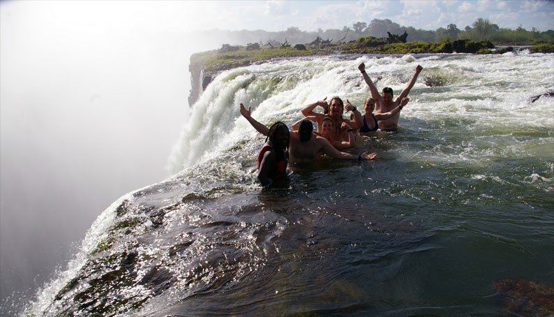 Las imágenes son impactantes. Miles de personas se bañan en estas piscinas naturales al borde del precipicio. Las Cataratas de Victoria, ubicadas en el continente africano, tienen una altura de 100 metros. En su cima podemos ver una pared de roca natural que protege a los bañistas de ser arrasados por la corriente; esto si el nivel del agua es bajo. Sin embargo, con altos niveles de agua no hay quien pueda protegerte.
