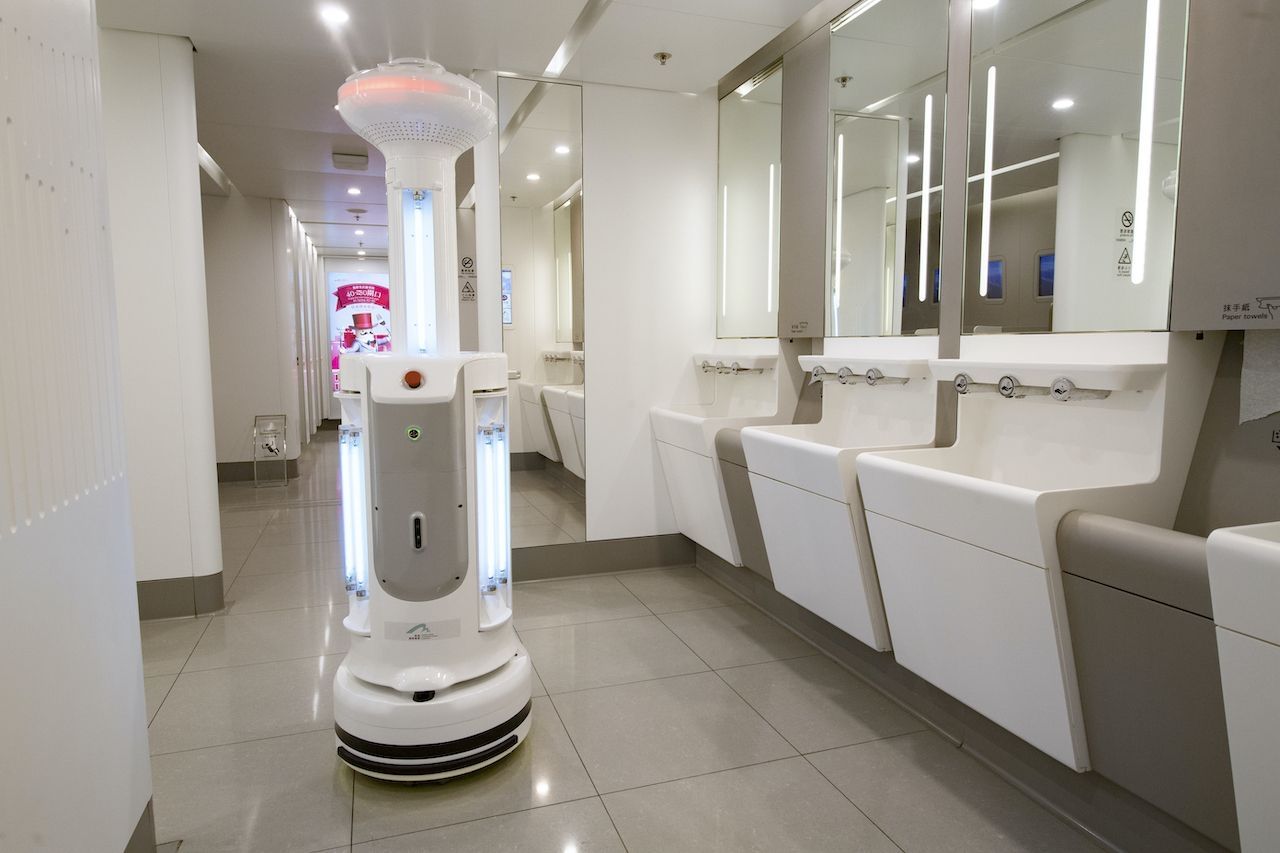 Los aeropuertos también serán estrictos en sus medidas de higiene. Tal es el caso del Aeropuerto Internacional de Hong Kong (HKIA) en el cual se implementó una novedosa cabina desinfectante de cuerpo completo, Cleantech, la misma someterá a los pasajeros a un control de temperatura y a un proceso de desinfección. Además en este aeropuerto también se está utilizando robots de limpieza autónomos, para desinfectar constantemente las áreas públicas y las instalaciones de pasajeros, como baños y otras áreas en toda la terminal.