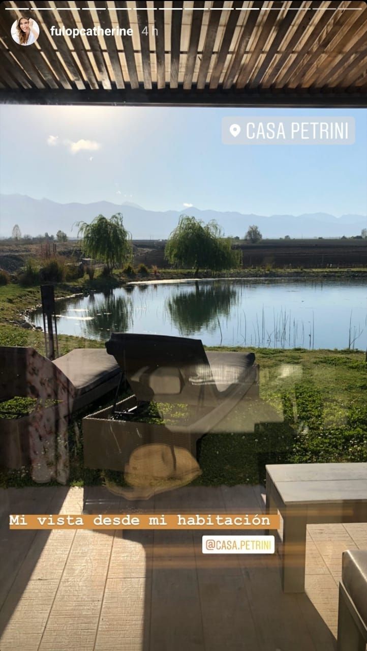 En sus historias de instagram sumó muchos elogios a la línea de vinos del lugar, sumado a la invitación a que todos los prueben. Además mostró la increíble vista desde la habitación donde se hospedó.