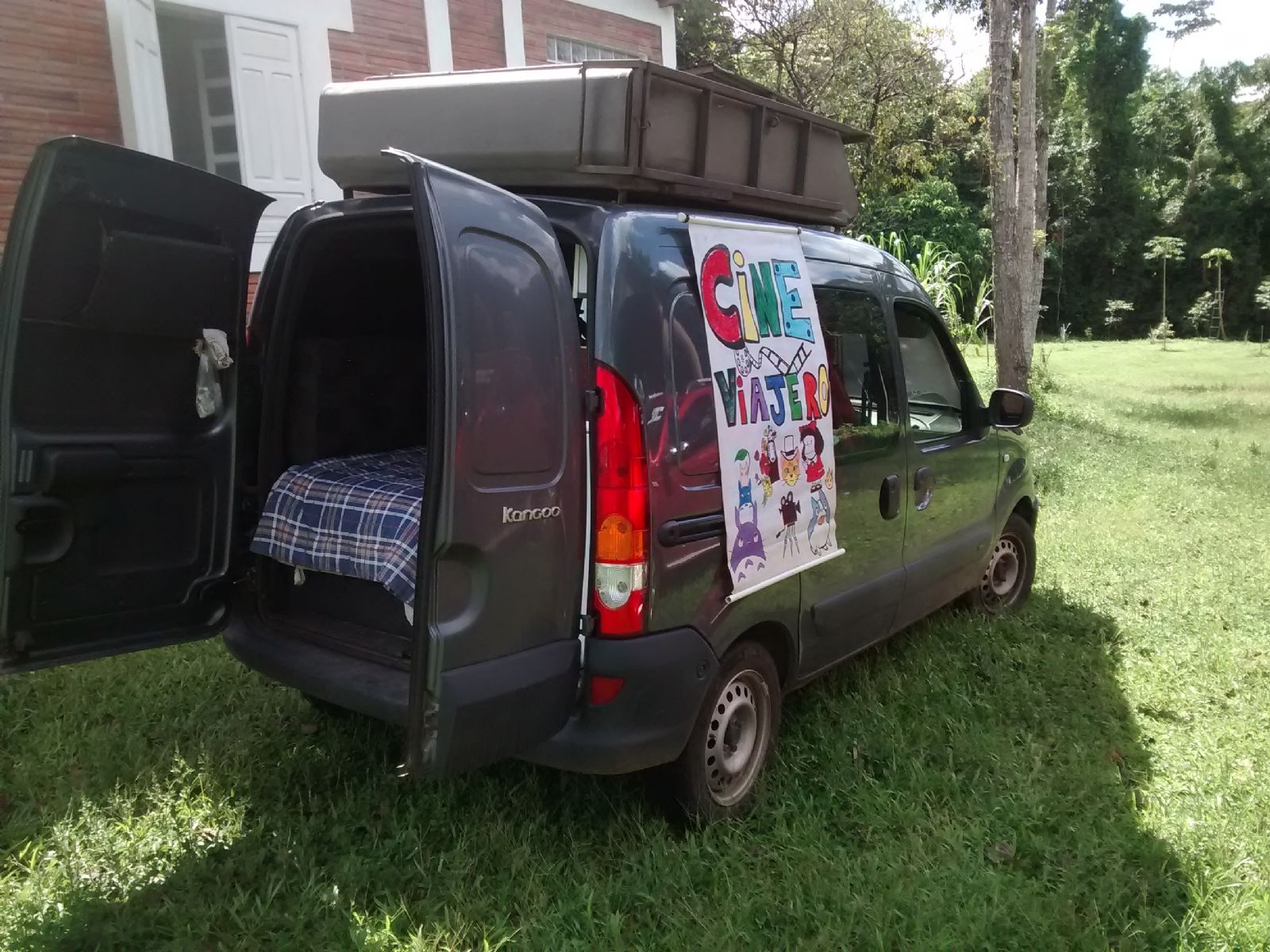 “Estoy viajando desde el 2015 por nuestra América, viajo sola manejando mi casa auto, una Kangoo Renault que modifique para poder vivir ahí”, cuenta Mayi quien nos invita a recorrer su hogar describiendo en detalles cómo fue diseñado y modificado, “tiene un sillón que se hace cama, debajo es un baúl para guardar los elementos de cocina, de higiene, ropa, y los equipos de trabajo para filmar las escuelas que visito, además guardo materiales de las artesanías, tengo una biblioteca, en el techo hay un portaequipaje donde guardo una garrafa, silla y mesa plegable”.