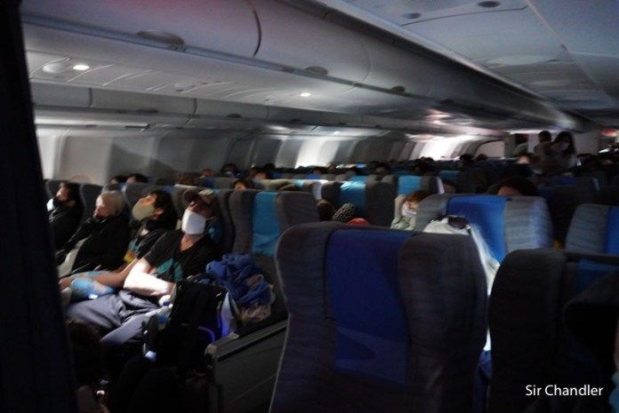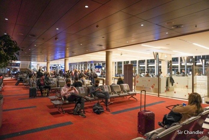 El avión en el que viajó el bloguero fue "llenísimo", no habían asientos vacíos de por medio y todos los pasajeros y la tripulación deben estar en todo momento con el barbijo puesto. No se permite caminar por los pasillos, salvo que la persona se dirija hasta los baños.