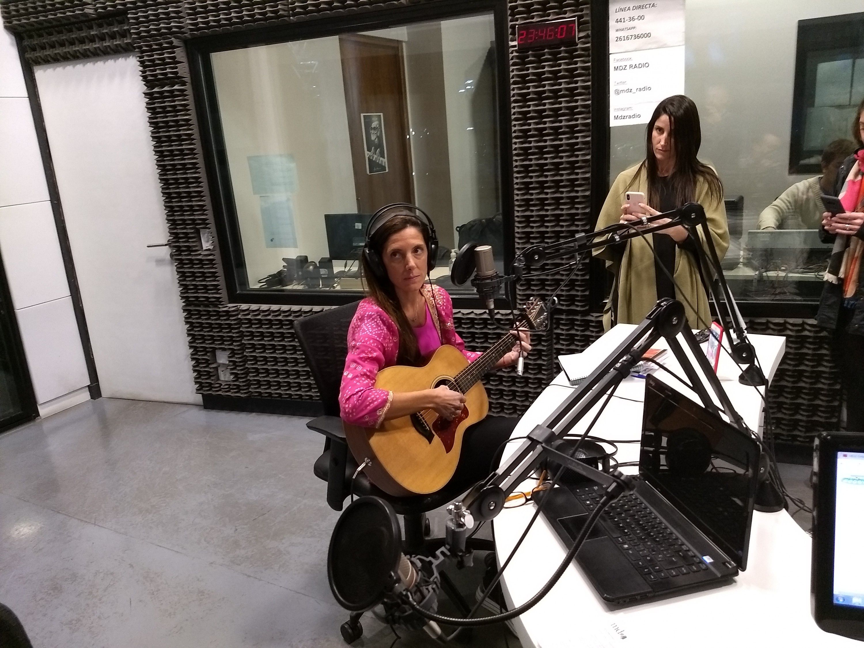 De su nueva producción, en la "Mesa MDZ" interpretó su canción "Perdón" y un clásico tango "Las noches del duende", de su primer disco "Esquizofrenia".