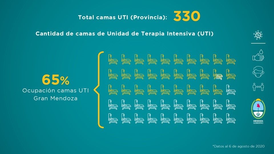 Si bien el total en la provincia es de 330, este número siempre puede ampliarse de acuerdo a las necesidades existentes. En el Gran Mendoza cuenta hoy con 175 camas, de las cuales un 65% se encuentran ocupadas entre todas las patologías.