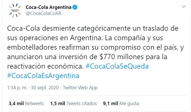 Lo cierto es que Coca Cola luego salió a desmentir la versión: