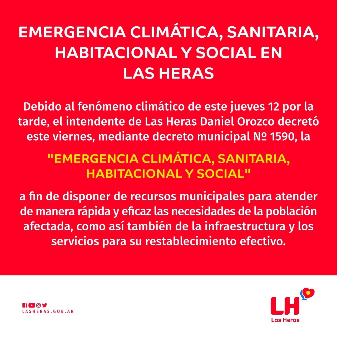 El intendente manifestó que todavía están llevando adelante un relevamiento minucioso de la situación para determinar las familias afectadas y agregó: "Vamos a asistir inmediatamente con colchones, nylon y todo lo que sea necesario para poder sobrellevar esta fuerte tormenta que nos azotó”.