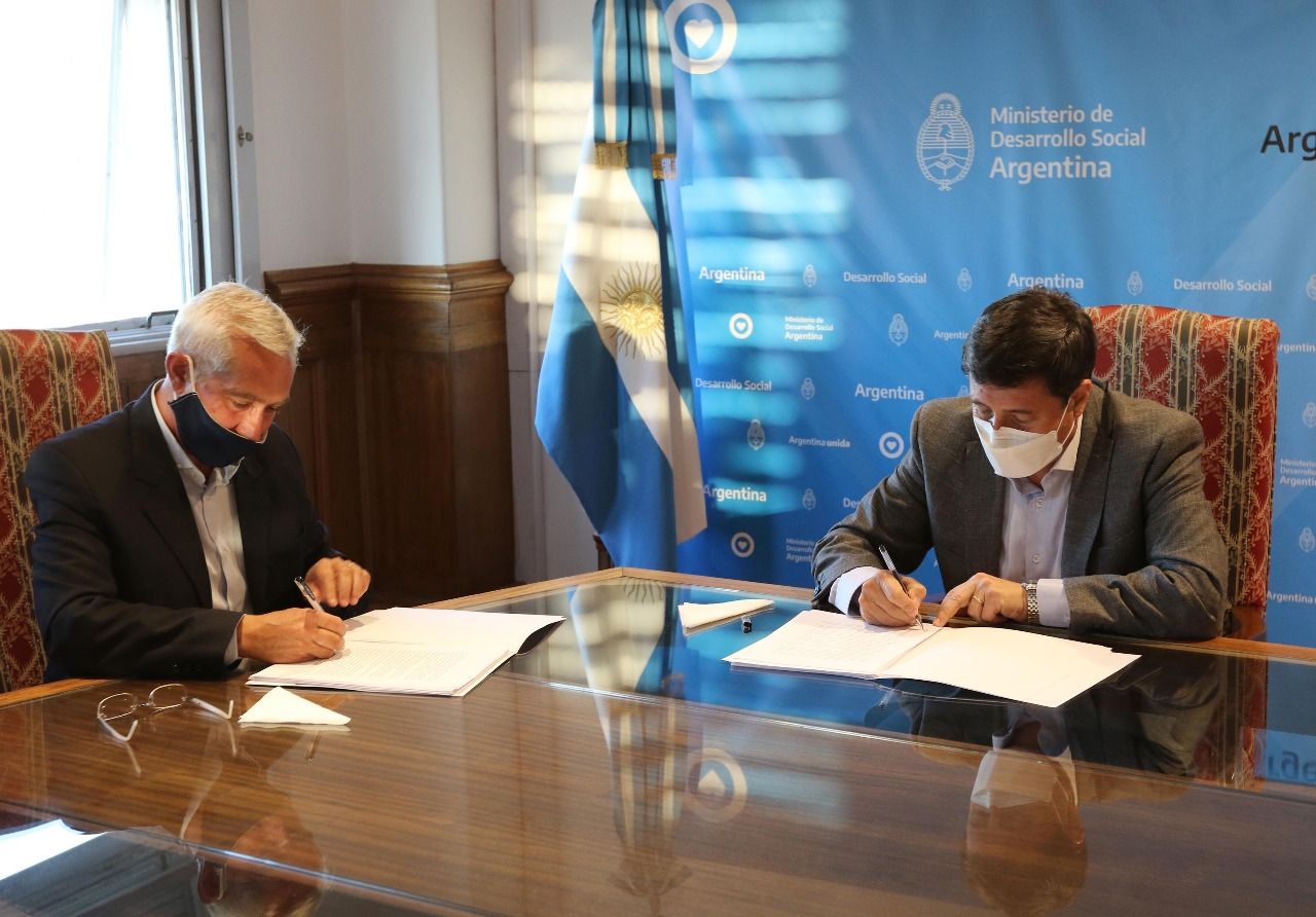 El ministro de Desarrollo Social, Daniel Arroyo junto a Jorge Tanús, presidente del BICE Fideicomisos, Banco de Inversión y Comercio Exterior, firmaron un acuerdo para la administración del Fondo de Integración Socio Urbana (FISU), que permitirá avanzar en la urbanización de barrios populares.