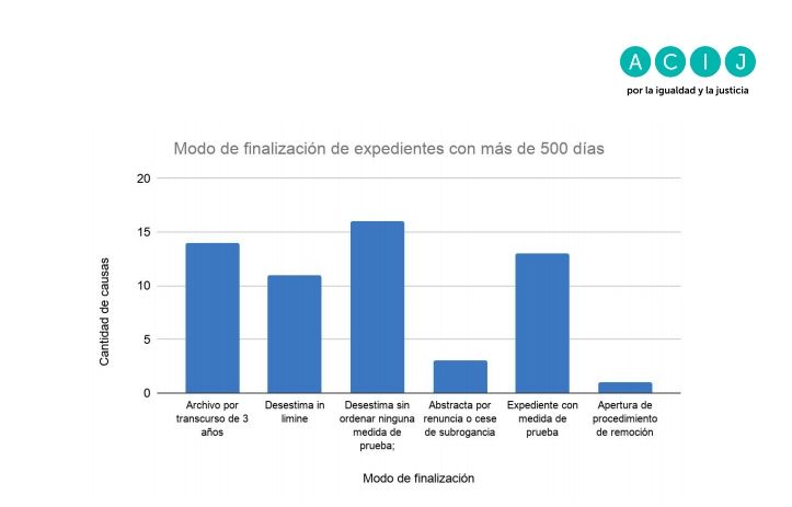 La Asociación civil por la Igualdad y la Justicia (ACIJ) elaboró un análisis de los procesos disciplinarios en el marco del Consejo de la Magistratura de la Nación. En el mismo se deja ver que casi el 95% de las denuncias son desestimadas, más del 40% no tienen medidas de pruebas y sólo el 2% se determinó la apertura del procedimiento de remoción. El resto de casos fueron desestimados o archivados.