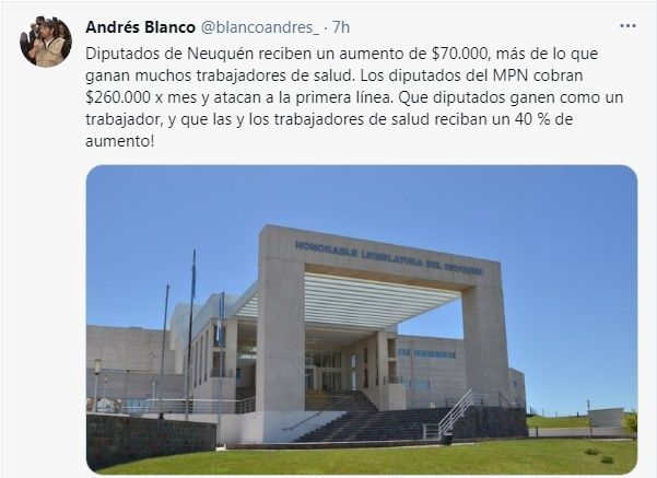 "Para nosotros esto es un escándalo. Se da en un momento particular, porque la situación de los trabajadores de la salud, que están en una lucha desde hace un mes y porque hay un reclamo ya que a los trabajadores esenciales les ofrecieron el 12% de aumento", describió Blanco.