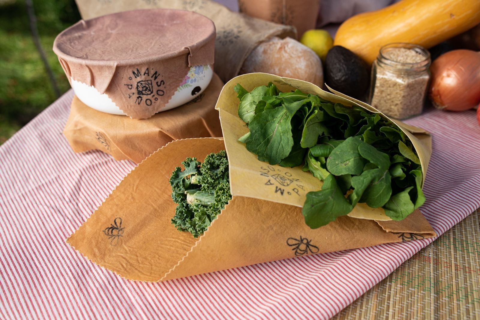 "Nuestro emprendimiento Manso Paño radica en realizar envoltorios ecológicos reutilizables. El objetivo es sustituir en la cocina el film y el plástico en el uso cotidiano. Los paños están fabricado con productos 100% naturales lo que contribuye a potenciar una economía circular".