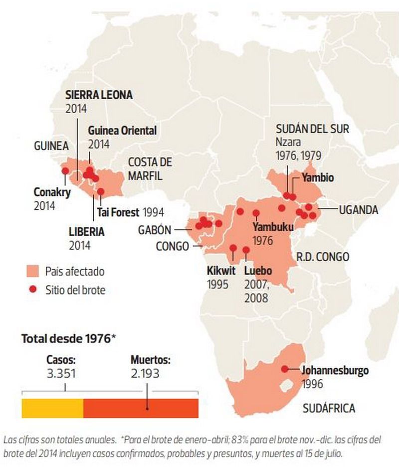 Muere de ébola el máximo experto en ébola: el mapa de la peste